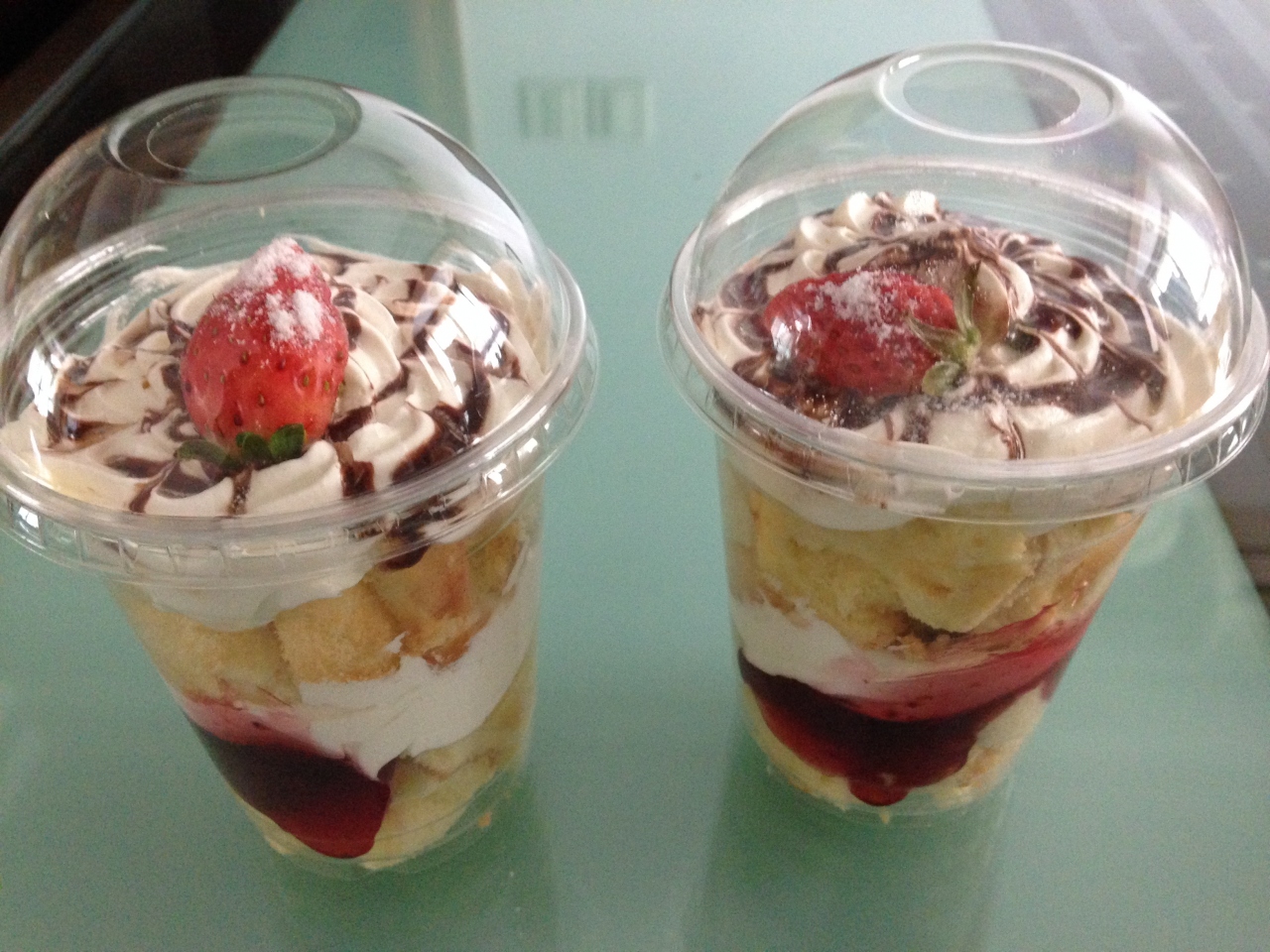 店名にあるようにカップケーキがお店の売りのようですが、それよりも安いトライフルを買ってしまいました。柔らかいスポンジケーキと生クリーム、イチゴジャム、イチゴが重なった物で2つで20元もしなかったので安さに目が留まって購入してしまいました。