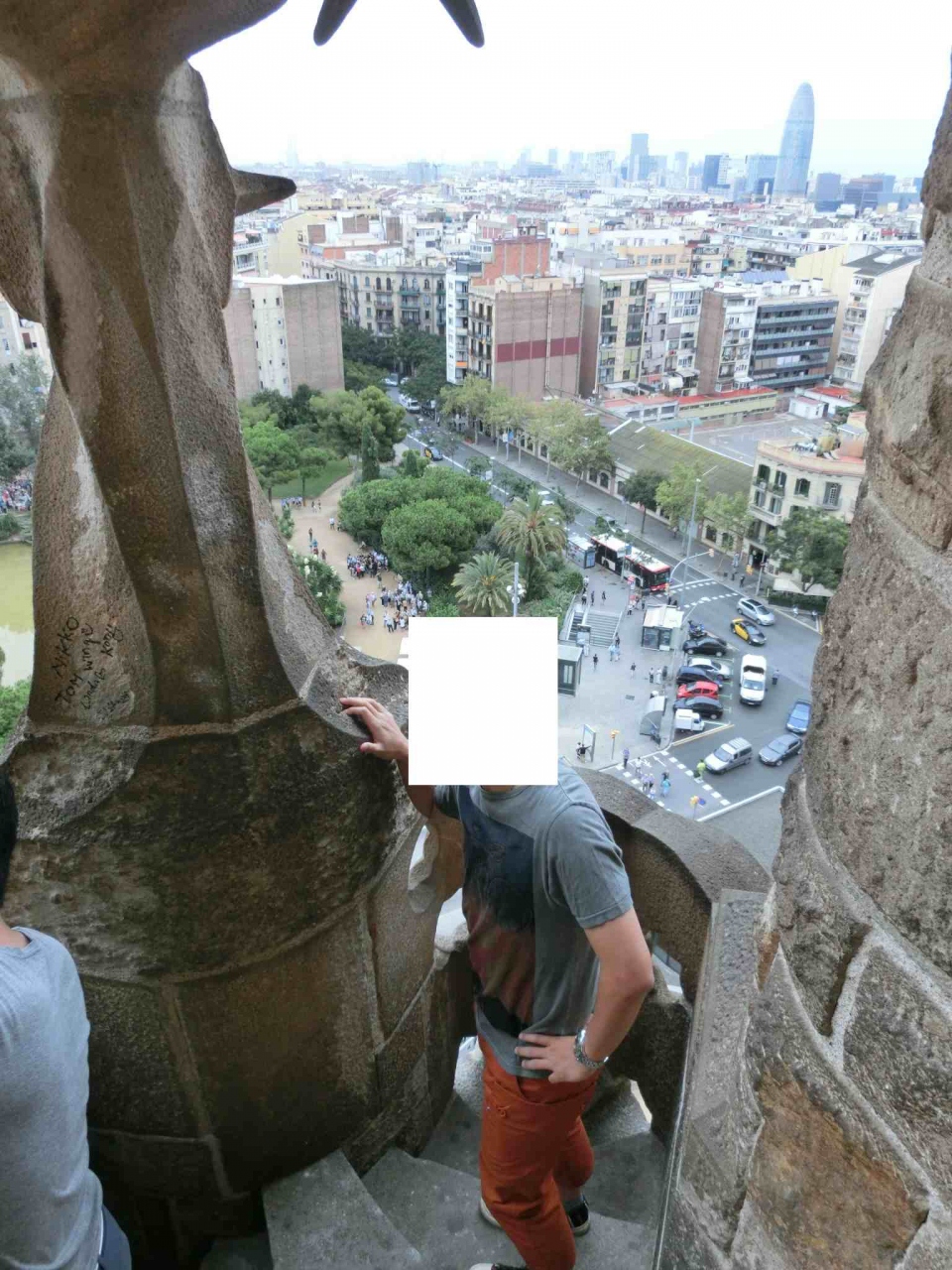 エレベーター予約まで30分でしかありませんでしたが、エントランス付近の写真を撮る時間はありました。生誕のファサード側から入場して右側にエレベーターがあります。エレベーター前のコインロッカーに荷物を預けて(20セントコイン必要でしたが、荷物ピックアップ時に返却あり)エレベーターに乗ります。上に着いたら後は写真をとりつつ降りてきます。階段で降りる場合は経路が2つありますが、景色が綺麗に見える外側の石段を降りるのがおすすめと係員のアドバイスがもらえました。