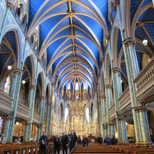 入口前の道路が工事中でフェンスが張られ、聖堂の中へ入っていいのか躊躇ってしまいましたが、思いきって入ってみたら声も出ないほどの美しさに息を飲みました。ちょうどミサが終わったところで大勢の人がいましたが、荘厳なパイプオルガンの響きと、夜空のような天井の装飾は、本当に素晴らしかったです。