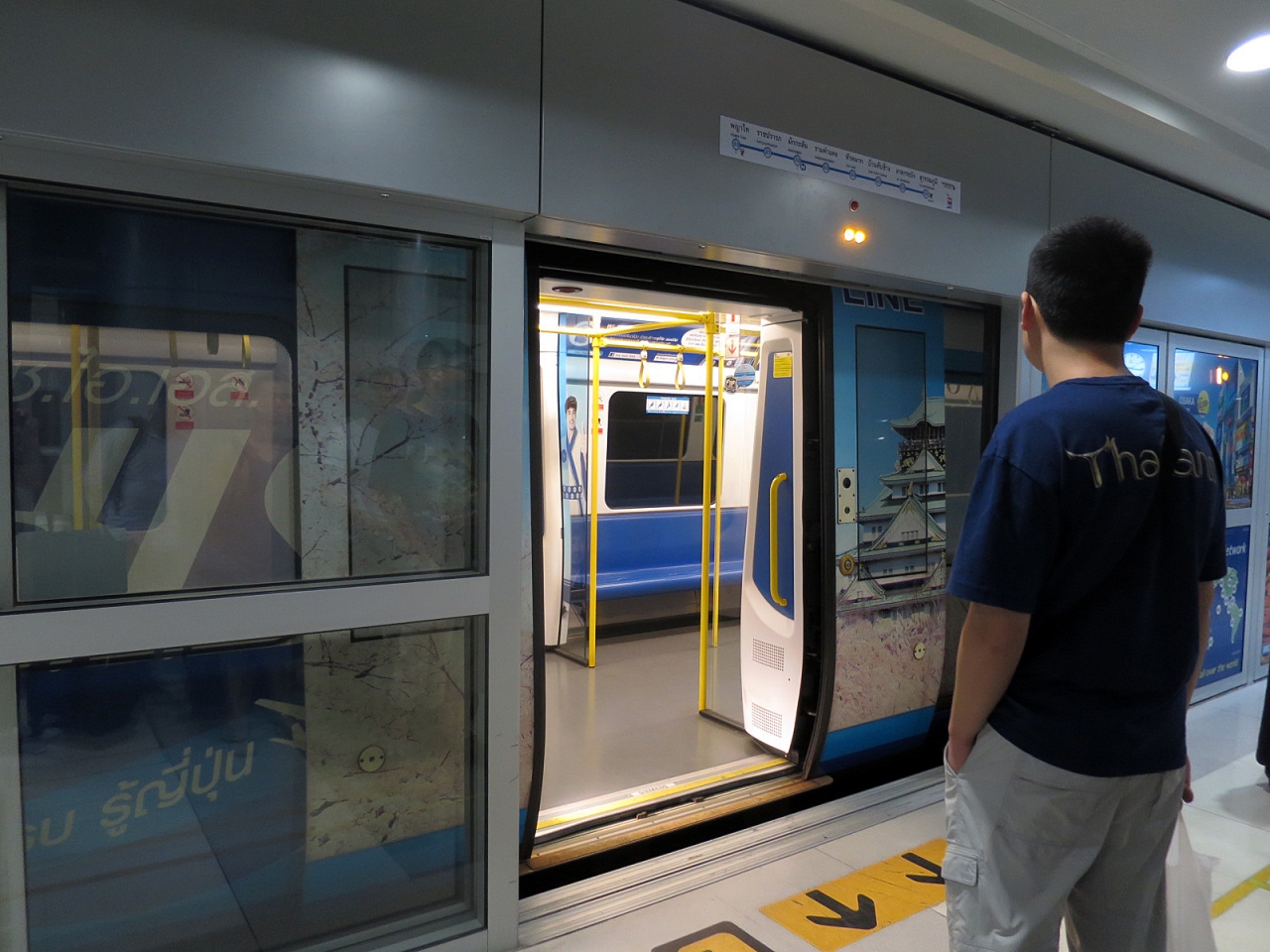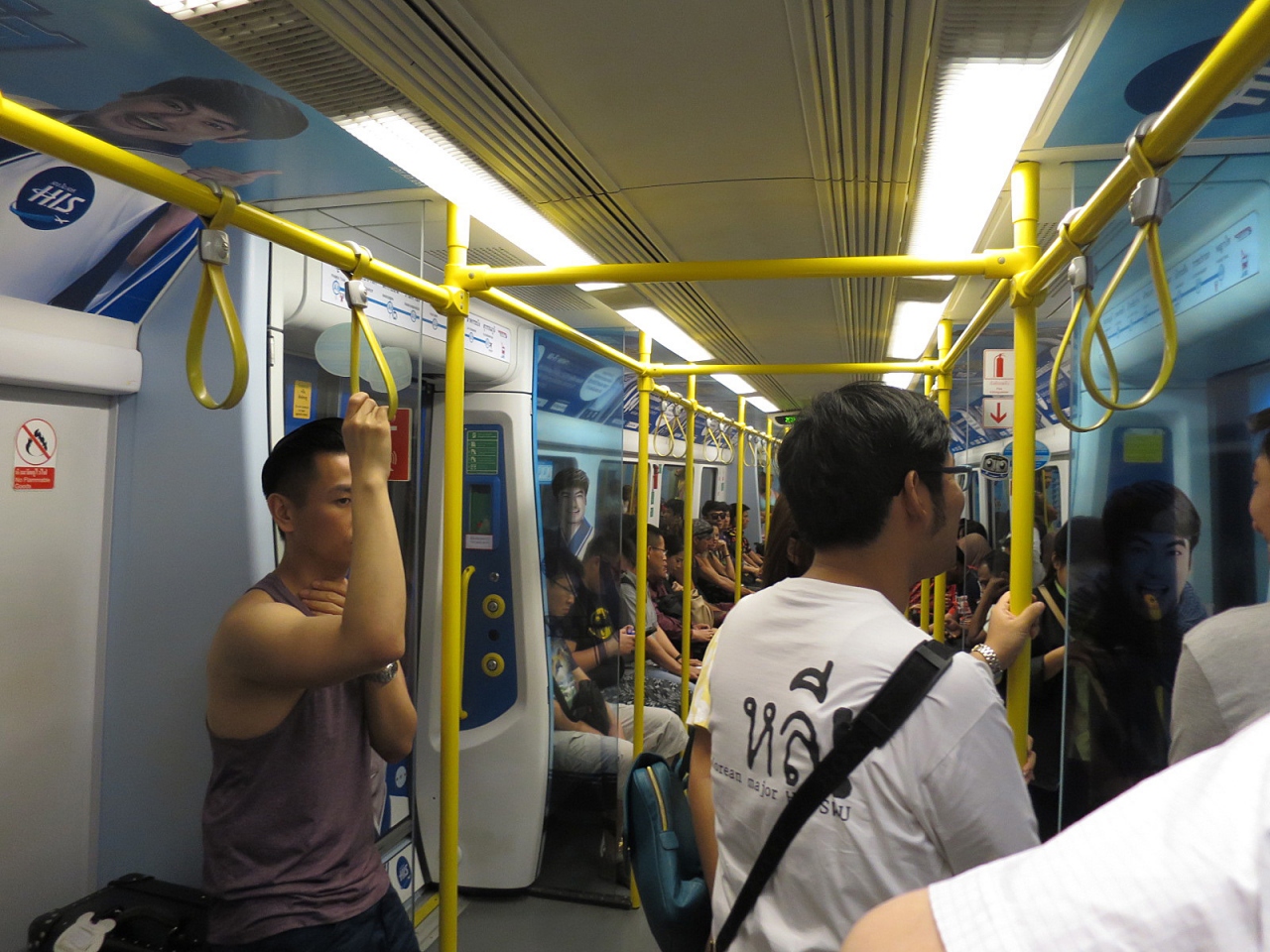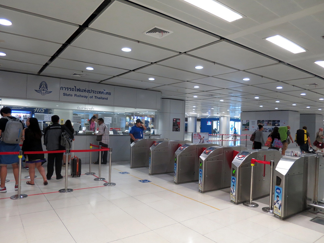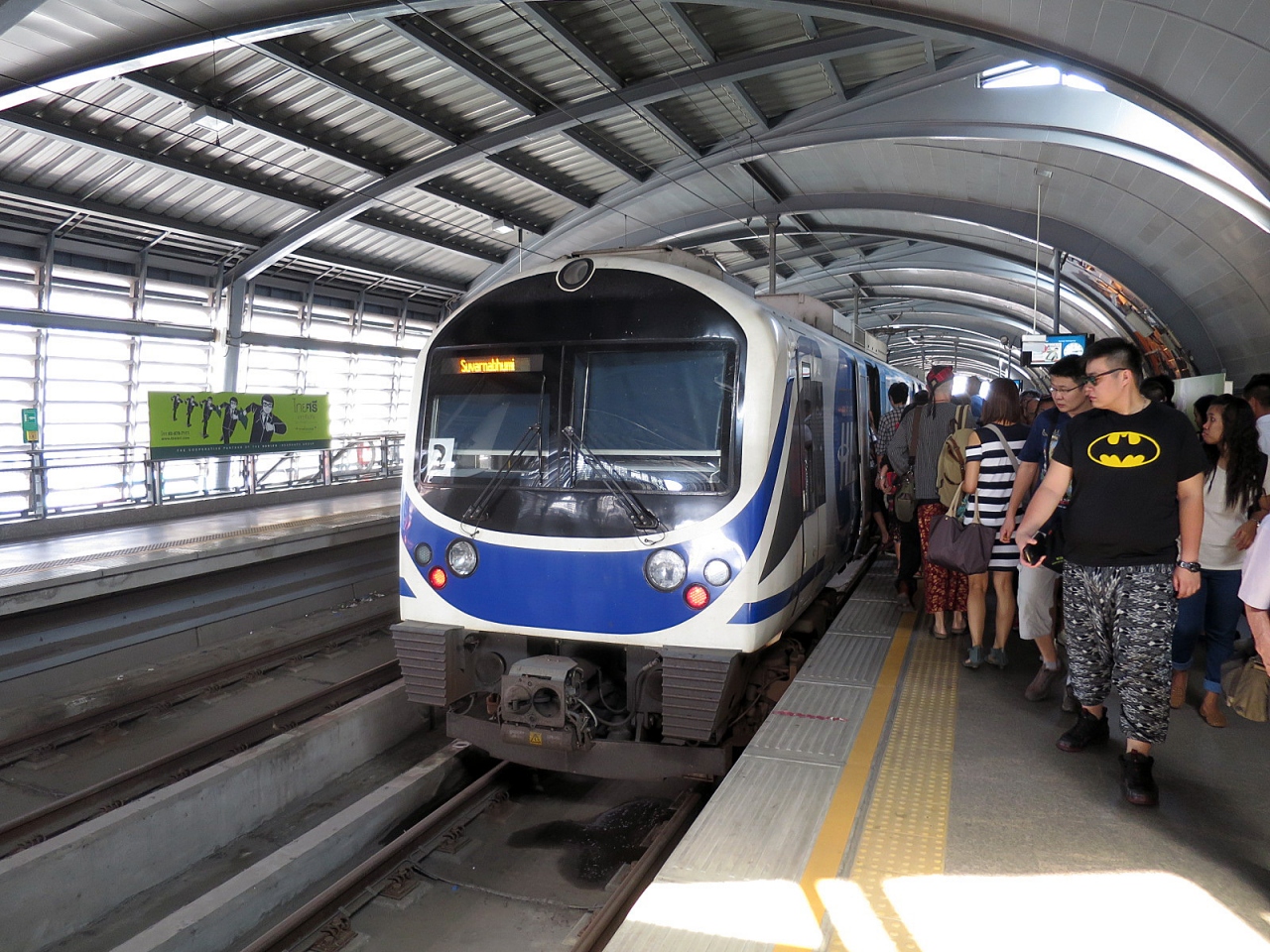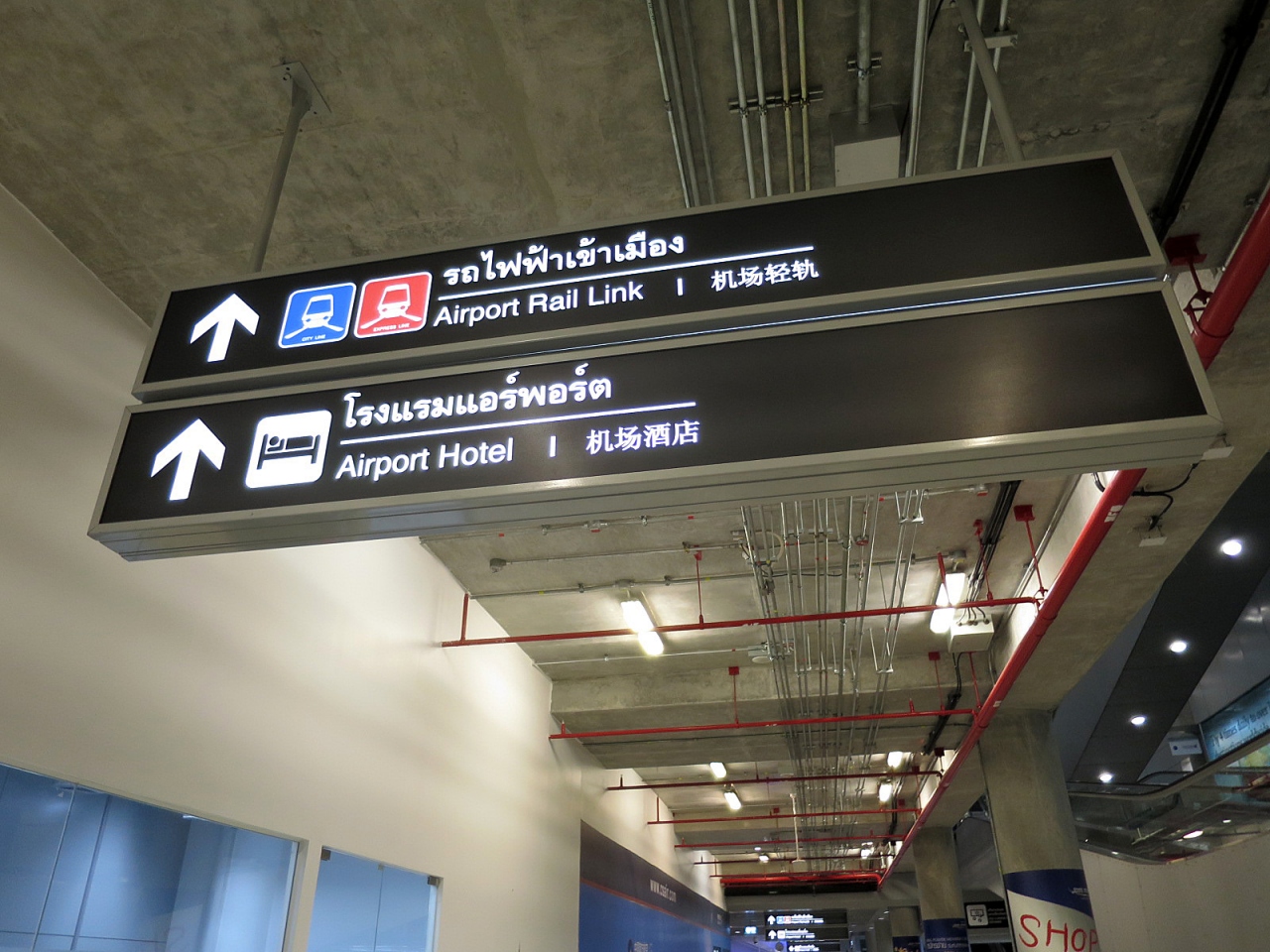 空港での表示は、英語では「エアポート・レールリンク」ですが、タイ語では「ロットファイ・ファー・カオ・ムアング」となっていますから、直訳すると「市内行き空中電車」ですね。今回はチェンマイからバンコクに日中に到着し、タクシー乗り場が長蛇の列だったため、「エアポート・レールリンク」を利用しました。乗り場は空港1階で、乗車券(トークンですが…)は自動発券機でも買えますが、大きなお札しかない人は窓口で買います。今回はパヤタイまでですが、エクスプレス・リンク(急行電車)が運休中であったため、シティ・リンク(各駅電車)に乗車することになります。「エアポート・レールリンク」の長所は、まず料金が安いこと。「パヤタイ」駅まで45THBという駅から駅までの料金は、タクシーに比べると格段に安いと思います。また駅構内も車体も大変に綺麗で、日本人にとって利用しやすいですし、何よりも時間が読みやすいというのは、特に空港へ向かう場合には最高のメリットだと思います。短所は、まず込み合うことが少なくないことで、長時間のフライトで疲れた身体には、たかだか30分弱であっても電車内で立って過ごすのは辛いこともあるでしょう。ただ最も大きなマイナス点は各到着駅の設備と、そこからの利便性です。「パヤタイ」駅にしても「マッカサン」駅にしてもエレベーターやエスカレーターといった設備が脆弱ですし、トイレもありませんし、結局ホテルまで重い荷物をひきずりながらMRTやBTS駅に乗り換えたり、最終的にはタクシーを利用することになることが多いため、私自身も最初からタクシーを利用したいと思ってしまいます。同行旅行者数、利用目的や時間帯などを考えて利用したいと思います。