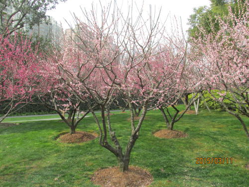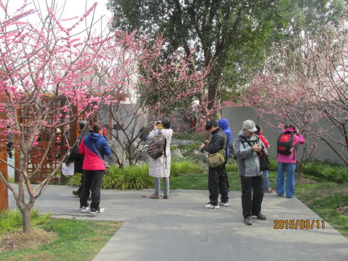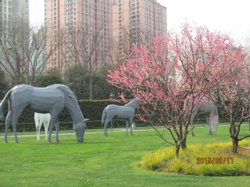 上海の都心「北京西路」エリアにほど近い「静安雕塑公園」。“彫刻公園”の名のとおり、園内には芸術作品があちらこちらに展示されております。本日、公園を訪れてみたところ、なんと梅が満開!多くの上海市民がカメラ片手に写真を撮っています。そのカメラが全て日本製のキャノンかニコンの一眼レフ、交換レンズも付けての超高級品、私のキャノンカメラでは太刀打ち出来ません。