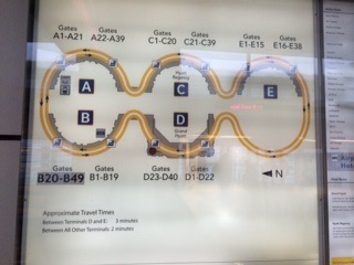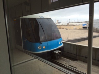 Skylinkはダラスフォートワース国際空港のターミナル間を移動するのに必要な電車です。到着ロビーからエスカレーターかエレベーターでプラットフォームまで上がって、目的のターミナルのサインが出ている側の電車に乗ります。移動時間は最大で15分程度です。