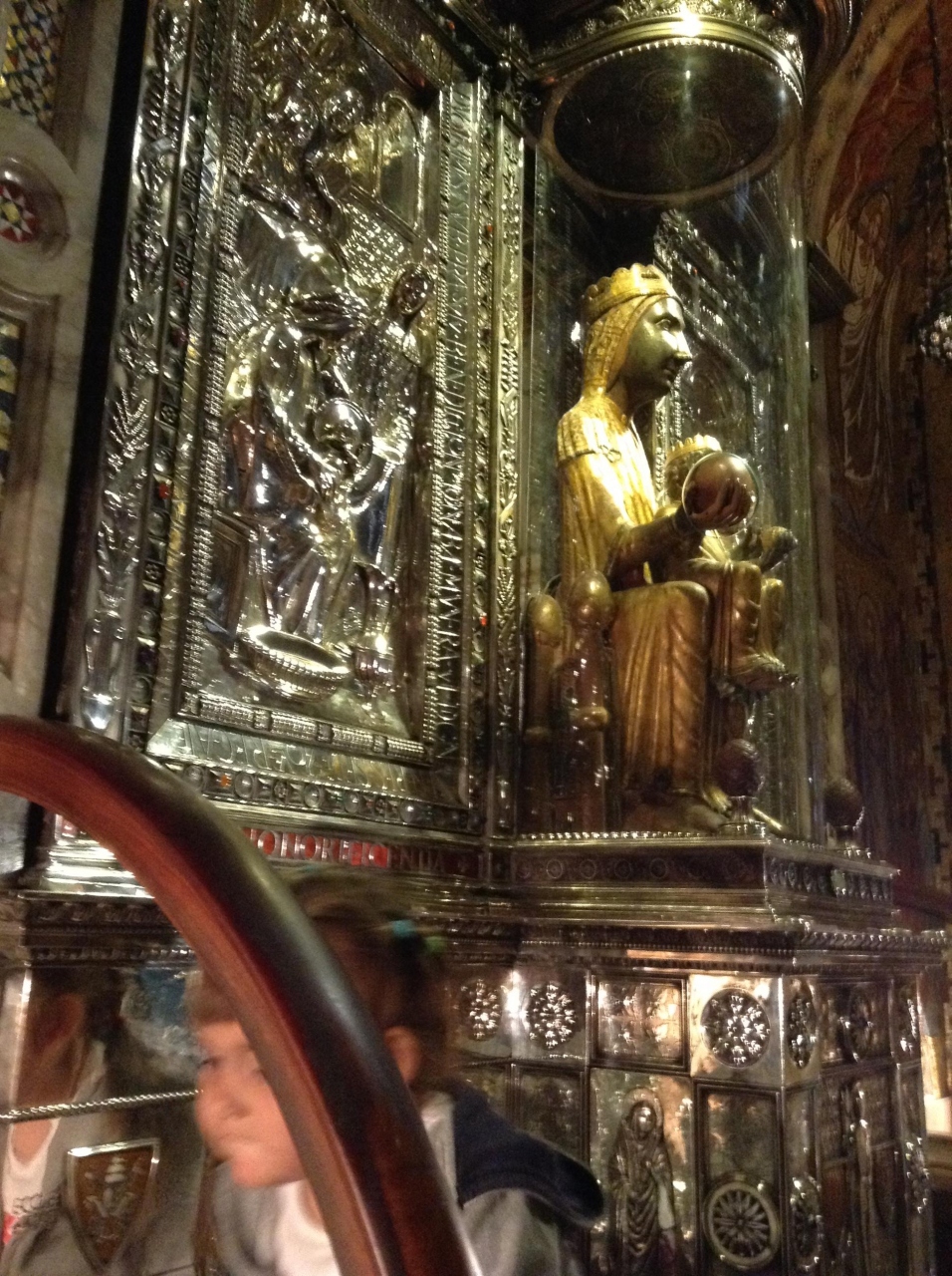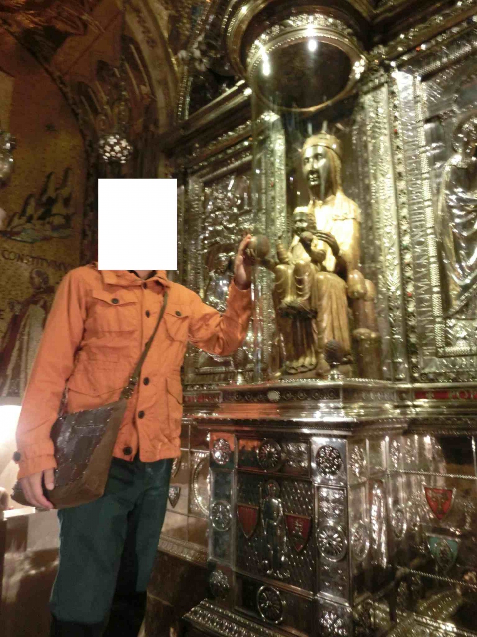 モンセラット修道院の中心的な存在となる黒いマリア像。マリア像が手に持っている黒い玉を触ると願いがかなうと言われています。玉に触りたいという観光客の列は教会の外側まで続いていました。黒いマリアに対面するまで1時間30分かかりました(午後に並びました)。前後をみてもアジア人なのは私たちだけでした。
