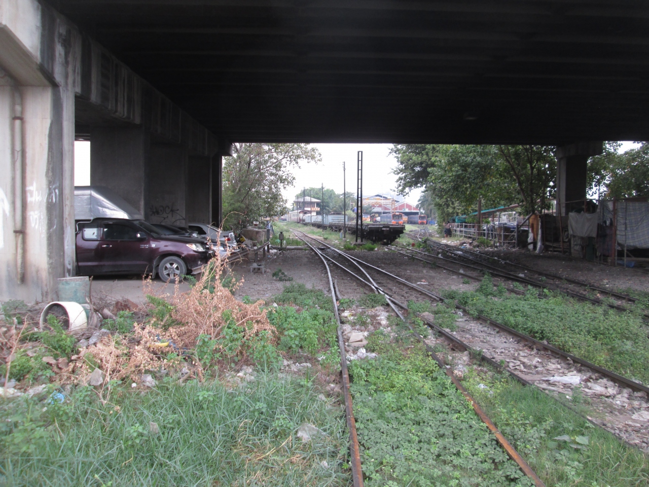 チャオプラヤー川の左岸に位置する国鉄駅で周囲はバンコクの下町風景となります。駅付近には市場がありのどかでローカルな雰囲気です。ターミナル駅のようで複雑な線路の構造になっているので鉄道ファンにはたまらない風景となります。
