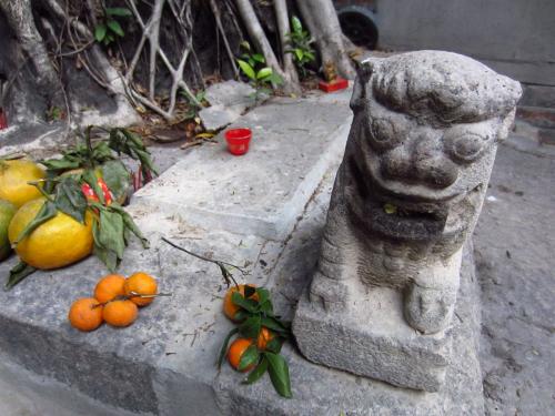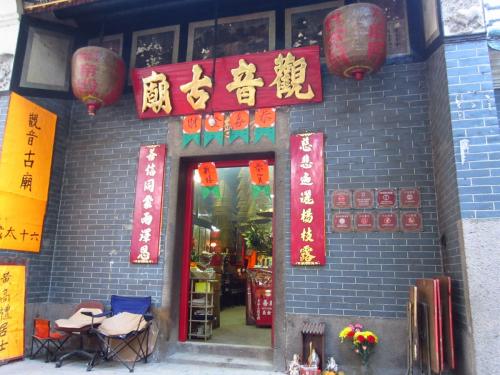 天后廟はその左右に観音廟と城隍廟があり、3つがくっついた形でたっています。朝訪れましたが、すでに朝からお参りに来ている地元の方がいらっしゃいました。天后廟の前は広場になっており、昼間はお年寄りの憩いの場になっています。夜になると、廟自体は閉まってしまいますが、周辺には占いのテントがたち、相談に訪れる人々がいました。