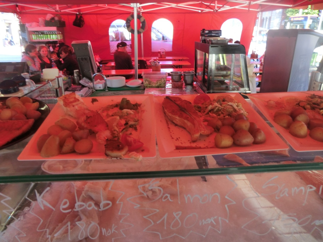 宿泊したホテルから見えて至近距離にあるため。この魚市場でテイクアウトで昼食夕食購入した。魚市場の西側にはセブンイレブンがあり、ここで飲み物購入し、ホテルの部屋で食事をした。この魚市場で夕食を購入すると、ボリュームがありすぎて私のような老人には余らせてしまうこととなる。魚市場で働く人は北アフリカ方面からのアラブ又はトルコ人でないか。ノルウェー人と思われる人はいない。何故だろう。