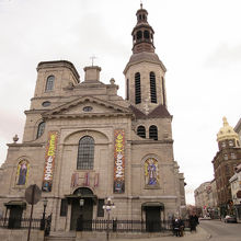 教会の中へは、誰でも自由に入れるようです。外観はどっしりとして落ちついているというか、簡素な石造りですが、中へ入ると、すっきりとした白壁に青空のような天井画、そして金色に輝く中央祭壇のきらびやかさに驚かされ、外観からは想像できない美しさにしばし見惚れてしまいました。