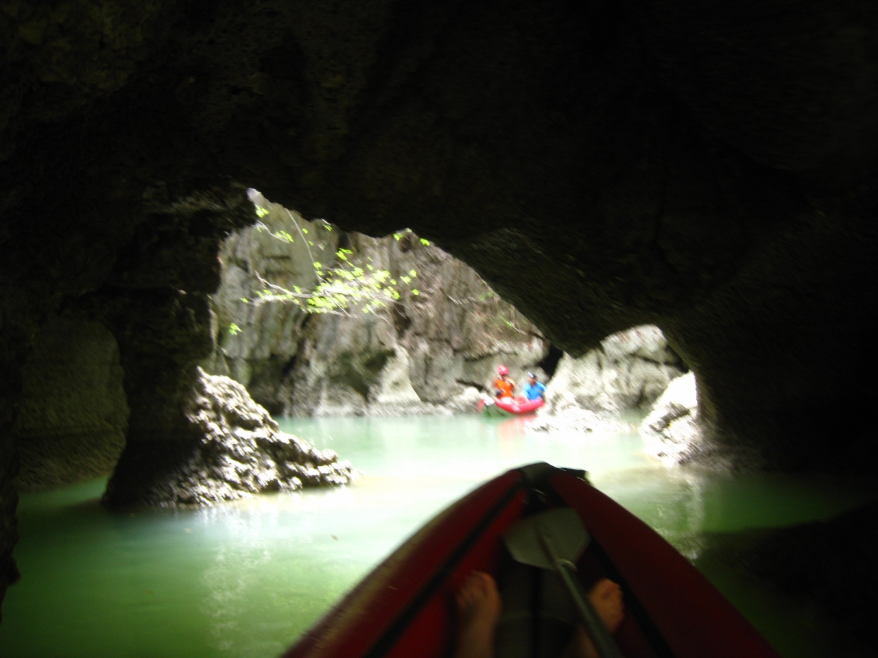 最初の2つは、干潮の時間に現れる鍾乳洞のトンネルをくぐって島の内側に入ります。