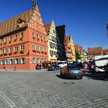 広場と言っても、ローテンブルクなどと違って、明確な「広場」というのではありません。また聖ゲオルグ教会はありますが、市庁舎はここにはありません。(少し離れた場所にあります。)けれど、ドイチェスハウスをはじめとした三軒の建物が並んでいることもあり観光の中心となっています。