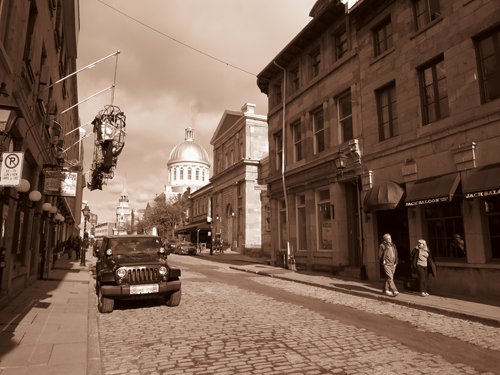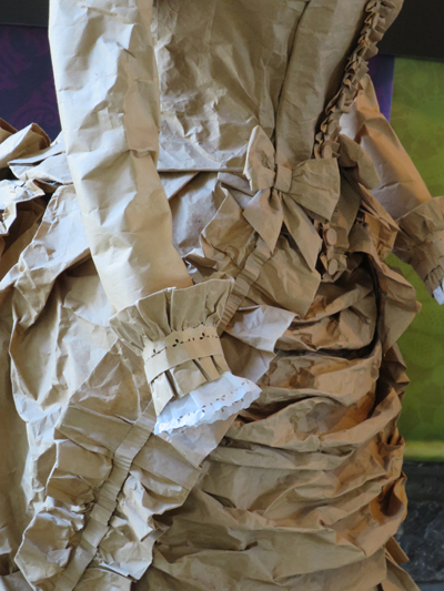 一階には工芸品や服飾品などを売るお店、二階はアートギャラリーなどが入っています。私が行った時には一階のミュージアム(Musee du costume et du textile du Quebec)で行われている紙のドレス展の紹介が入口近くに置いてありました。非常に精巧に作られていて、紙でできているとは思えないほどの完成度です。こうした展示は定期的に変わるらしいので、ちょっと覗いてみてもおもしろいかなと思いました。また、マーケット前の石畳の通りは、なかなか雰囲気があって良かったです。