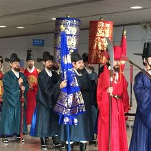 家臣を従えた王様と王妃様の行列に遭遇。