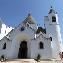 いくつかの塔と教会を寄せたようなChiesa di Sant'Antonioはトゥルッリのお城といった感じもあり、
