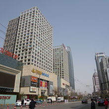 済南の目抜き通りに建つショッピングモール