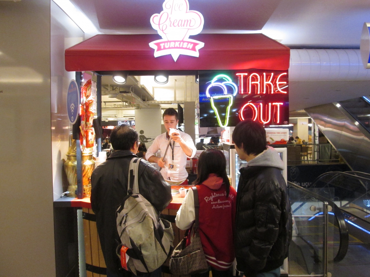 アタトゥルク空港内にはフードコートが充実していました。ローカルフードから日本人がおなじみのバーガーキング、スバーロなども入っていました。12月の冬の時期でしたが、トルコアイスのブースもありました。食べることには困らないと思います。