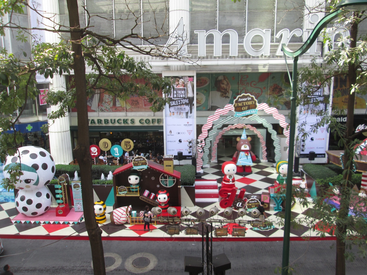 アマリンプラザのエントランスは季節感があります。クマが中心になり種々のパターンのディスプレーが行われます。バンコク市内のショッピングセンターでは11月末頃から年末のセールが開催され、12月はすっかりクリスマスモードになっていました。