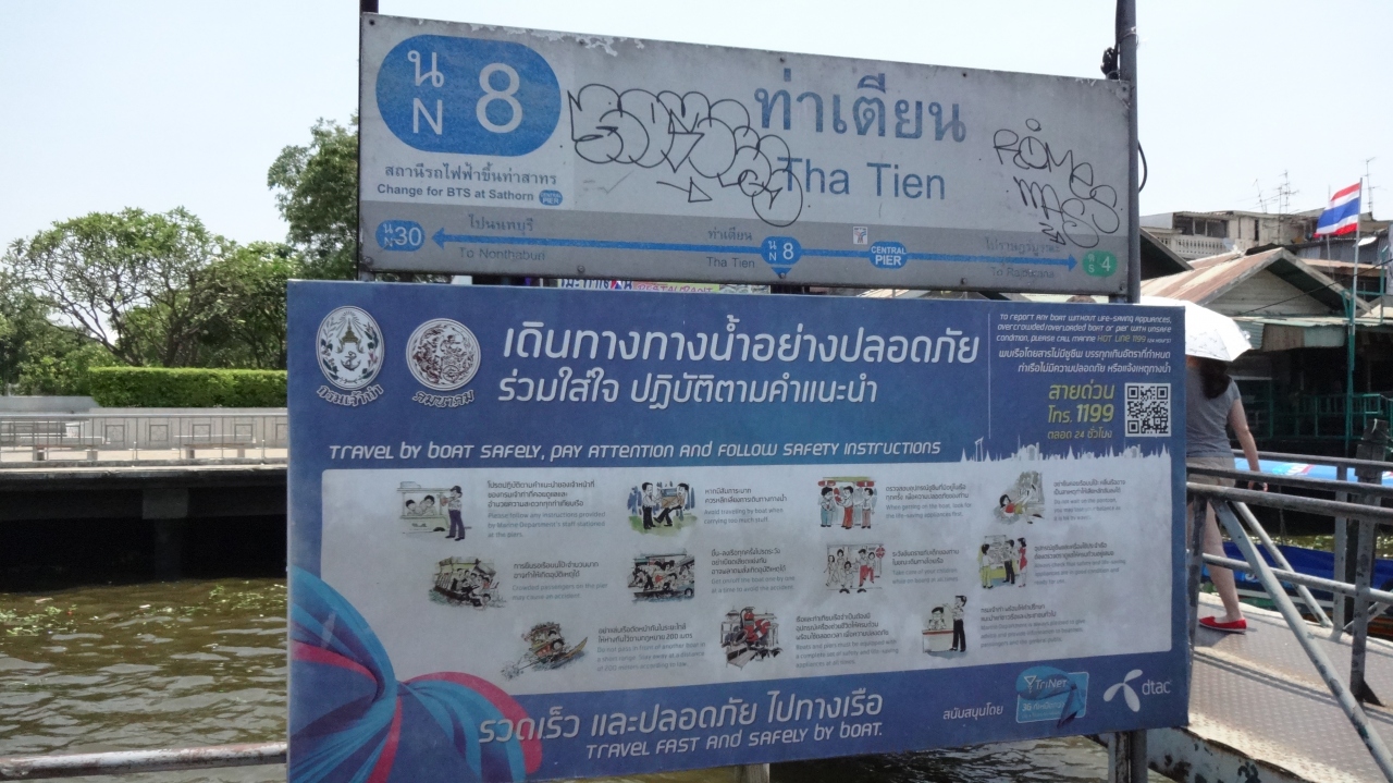 前回乗った時は15バーツ/1回だったと記憶していますが、来た船に乗ったのですが40バーツ支払いました。(青旗は特急だったので高かった?)