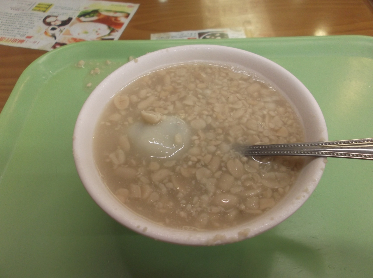 散々迷った挙句、花生湯芝麻湯圓(ピーナッツのお汁粉)にしました。