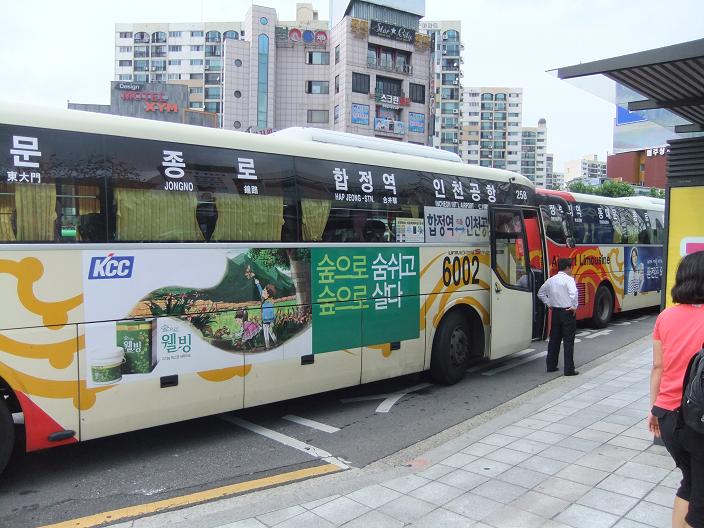 ソウル市内へ行くのには電車とバスがありますが、バスの方が空港出口から乗り場への距離が近く大きな荷物があるときは便利です。仁川空港から清涼里駅まで交通事情などにもよりますが1時間30分くらいで料金は10,000ウォンでした。主要駅付近など観光客が多く利用する場所では日本語のアナウンスが流れ便利でした。