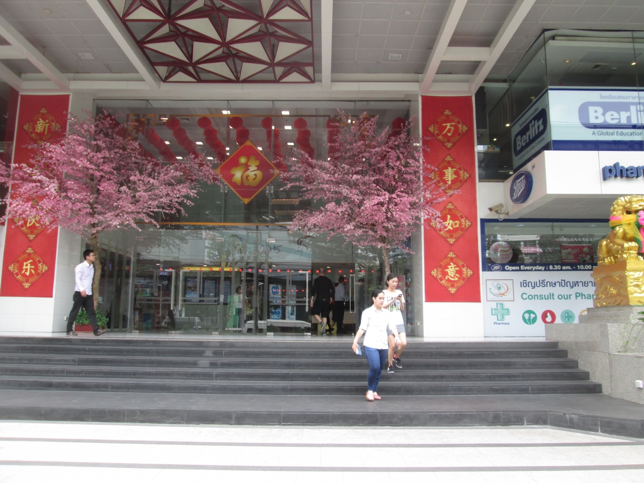 2月上旬にタイムズスクウェアに訪問すると店内のエントランスには赤い飾りが付けられて旧正月祝いのセールを行っていました。バンコク市民だけでなく、中国系の観光客が訪問していました。新年はお祭りの雰囲気はありませんでしたが、旧正月の方が盛り上がっている雰囲気がありました。