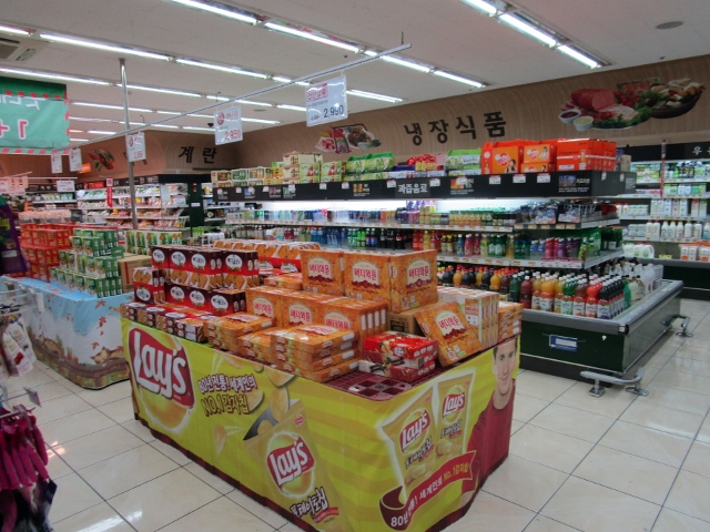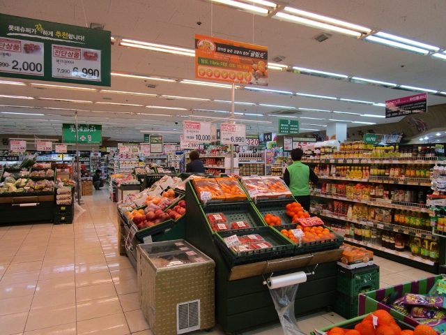 ロッテスーパーナンポドン店は、品数はそれほど多くない、小さ目のスーパーですが、コンビニで買うより値段が安いので、利用しやすいです。
