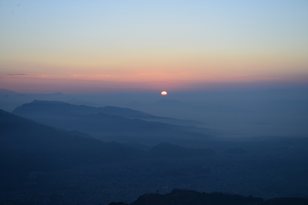 朝日を見にいく場合は多くの人が訪れます。暗いうちにポカラの街を出発して歩いても行けますが、前日にタクシーを予約しておいて5時過ぎに出発して見に行くのが一番簡単で楽です。タクシーも人によって停める場所が異なり、本当に近くまで行く人もいれば、麓の遠い場所で降ろす人もいます。運転手の力、渋滞など避けるためなど色々考えがあるようです。麓の遠い場所で降ろされると、登るのに若い人でも1時間位は掛かります。朝日は時間が決まっていますので、タクシーの運転手と相談して出発時間は余裕を持った方が良いと思います。山頂でも人が多く、ベストポジションを確保するには更に早く行く必要があります。ちょっと油断していると割り込みもいます。日本人も多いですが、最近は隣国の人が目立ちます。