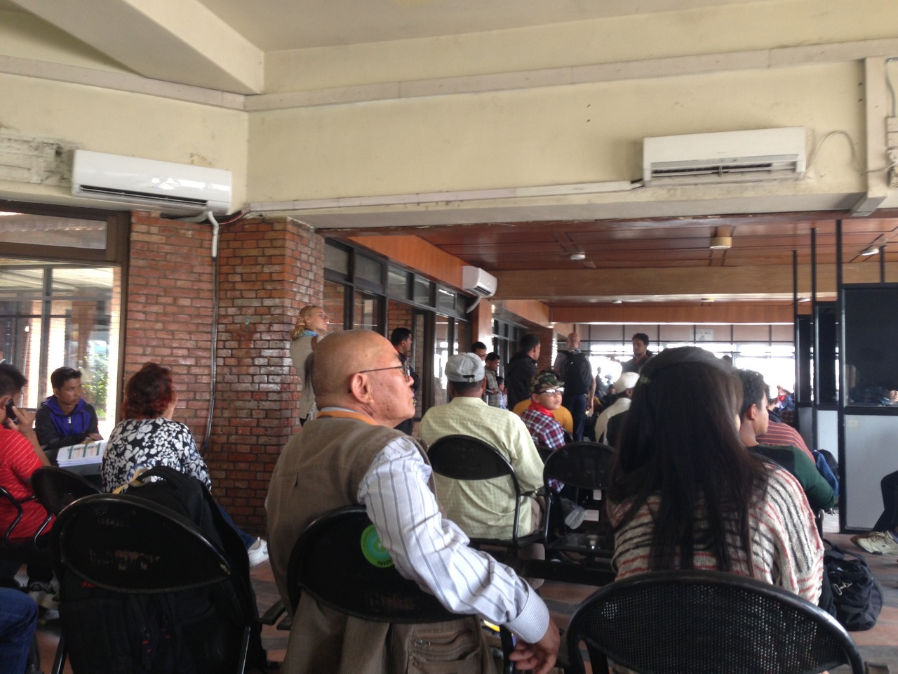 最後の搭乗待合室で、ようやくエアコンあり。