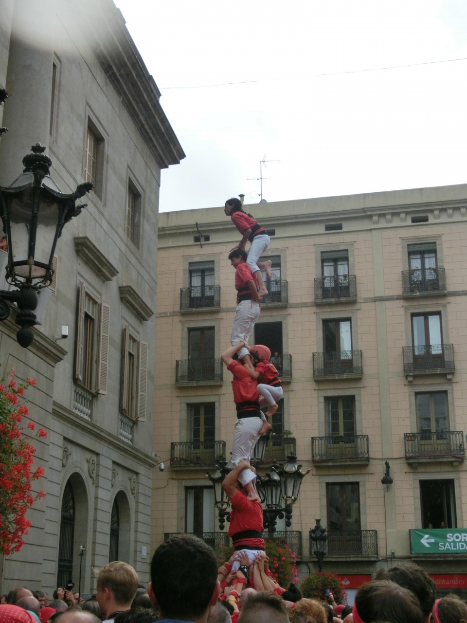 メルセ祭り期間中(9月末)はこのバルセロナ市庁舎前のサン・ジャウマ広場で人間の塔が見られました。また、周辺にはギガントと呼ばれる巨大人形が練り歩いていました。見物客でぎゅーぎゅーでしたが、人間の塔のてっぺんが見られてテンション上がりました。