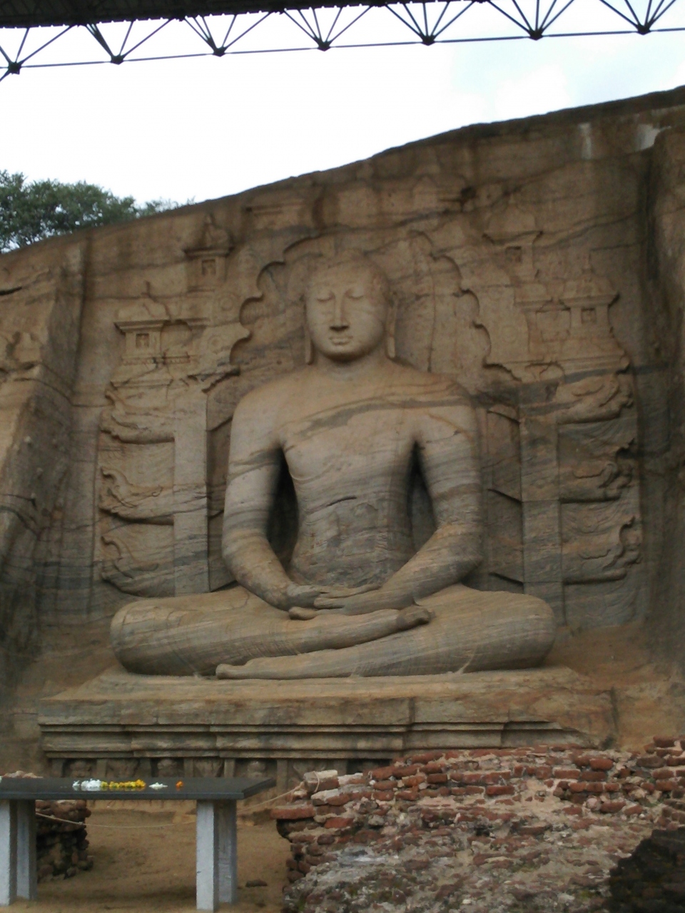 ここガル・ウィハーラは世界遺産に登録されて、仏像が風化しないように屋根が取り付けられています。