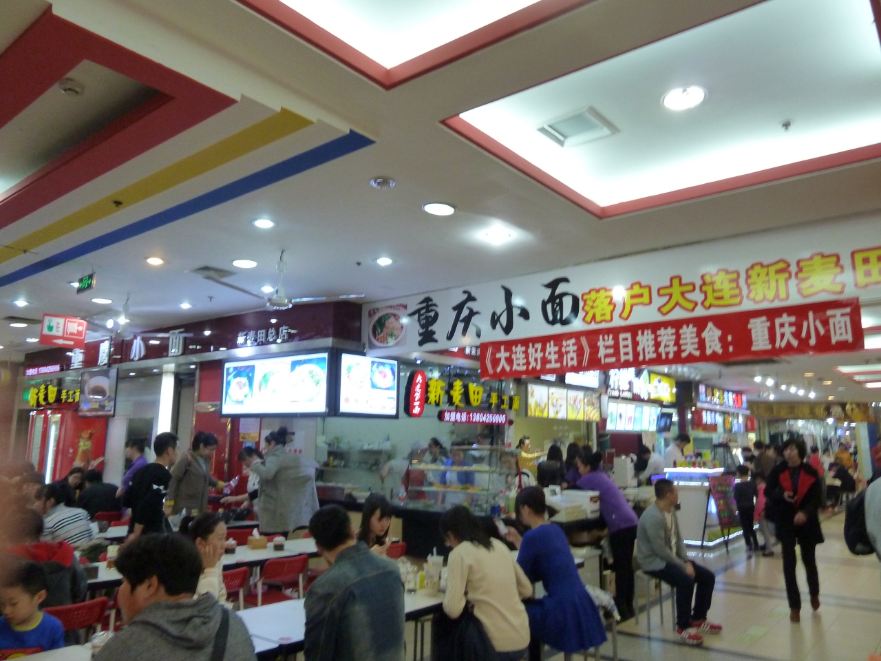 大連駅前の地下街。巨大な迷路のように、雑多な商店が並んでいて、迷子になること確実。地下三階は、フードコートになっていて、いろんな食べ物が食べられる。寒い土地柄のせいか、辛い味が多いかも。1日いてもあきないが、ほしいものはなかった。