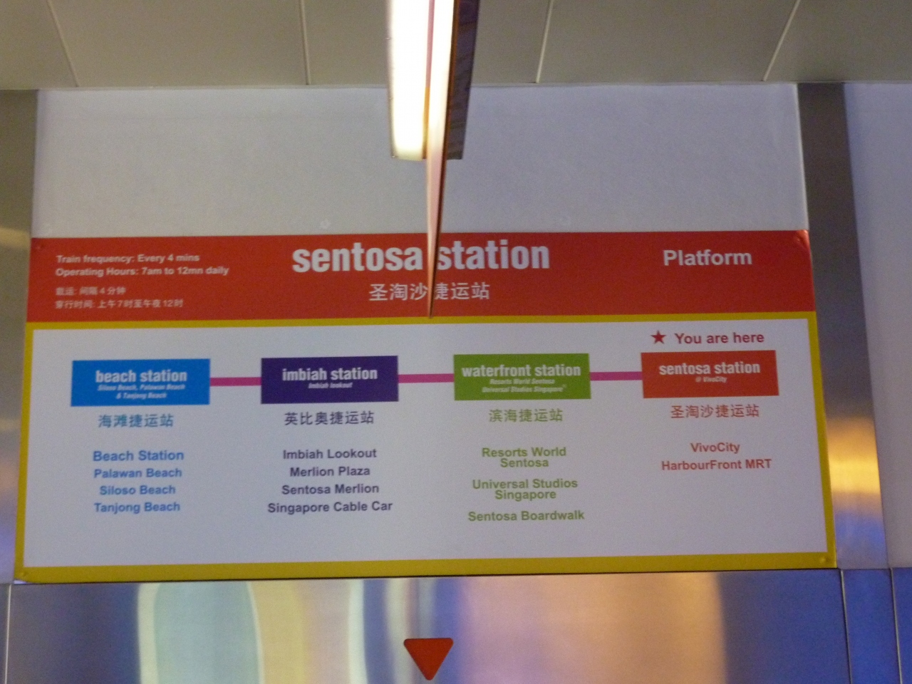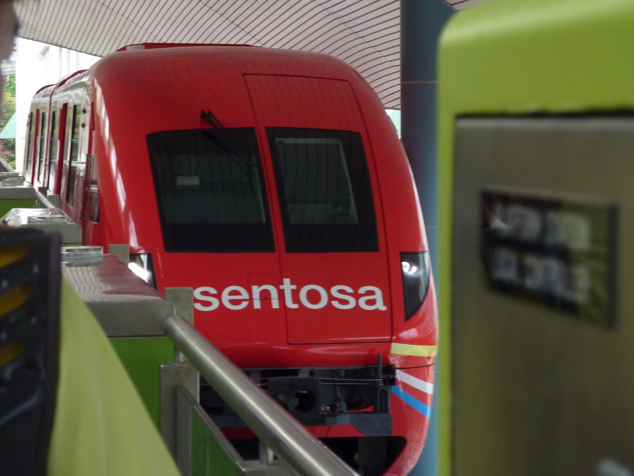 MRTから乗り換えてセントーサ島に入るのに一番便利な交通手段です。入島料込で往復$4は安く感じます。セントーサ駅からウォーターフロント、イビスを経てビーチまで駅は全部で4カ所で、乗車時間も短いですが、一度乗ったら島内の移動は無料なので便利な交通手段です。2両編成で乗車定員は少ないですが、5分位で次の便が来るので行列ができていても割と早く乗車できます。赤、ピンク、青、その他、虹の七色にカラーリングされており、次の列車の色を予想するのも待つ間の楽しみになります