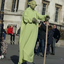 ナショナルギャラリーの前の大きな広場に、三越モデルのライオンがあり、かなり高さががあるのですが、皆よじ登っていました。にせミッキー、空中浮遊に見えるパフォーマー(ネタはバレバレ)等、賑やかで見ていて楽しいですが、気を取られていると、観光客狙いの物売りが寄って来るので、気を付けた方が良いと思います。