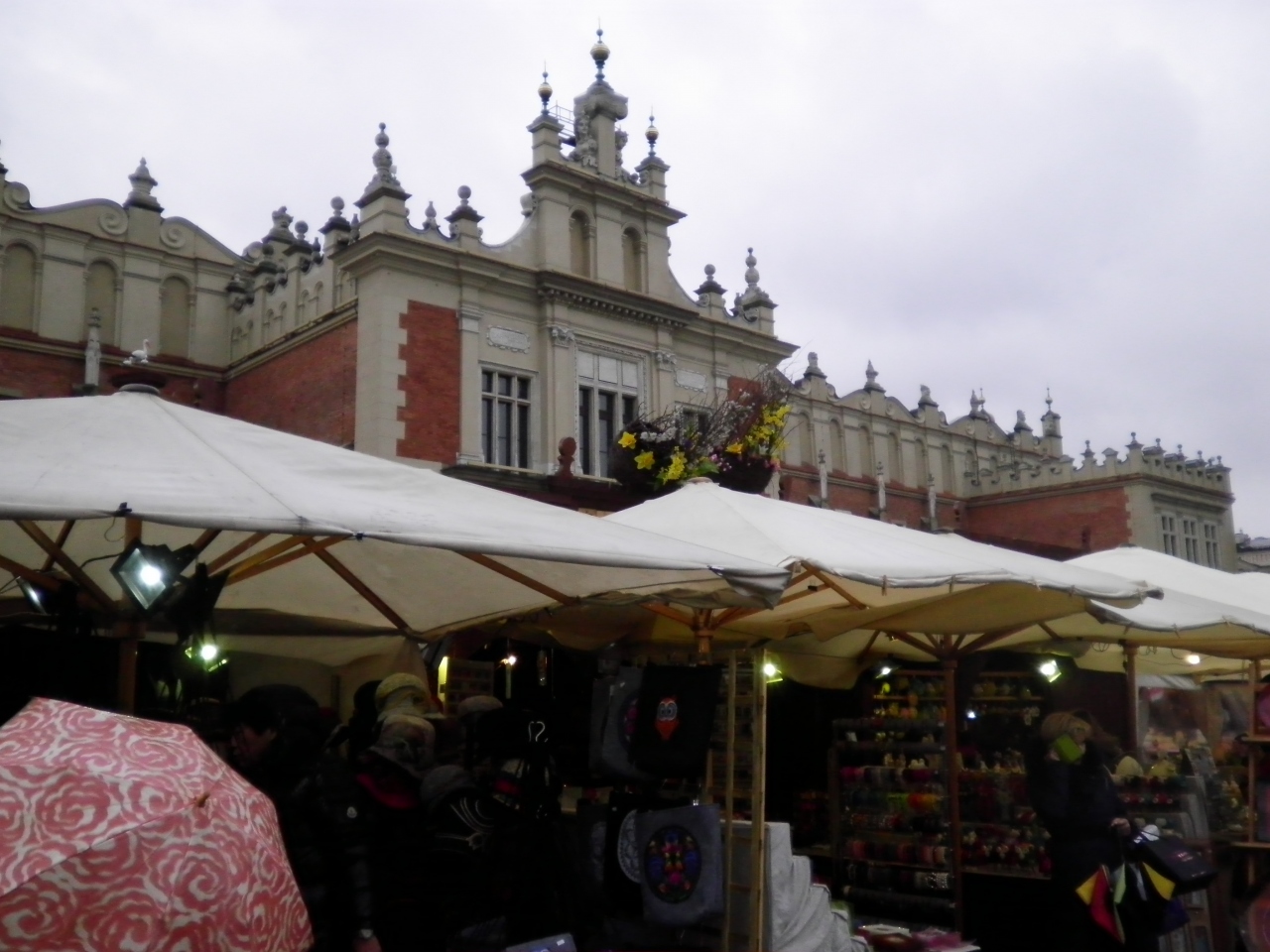 クラクフの旧市街の中ほどにある4万?の広大な中央市場広場の真ん中にある全長100mの建物で、14世紀の建造で、16世紀の焼失後にルネサンス様式で再建されました。