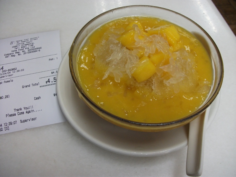 チャイナタウンの人気スイーツ店。席を取った後でレジへ行きオーダーします。かき氷は食べきる自信がなかったので小さめのMango Pomeloをオーダー。隣の席でローカルの人が食べていたちまきが美味しそうでした。