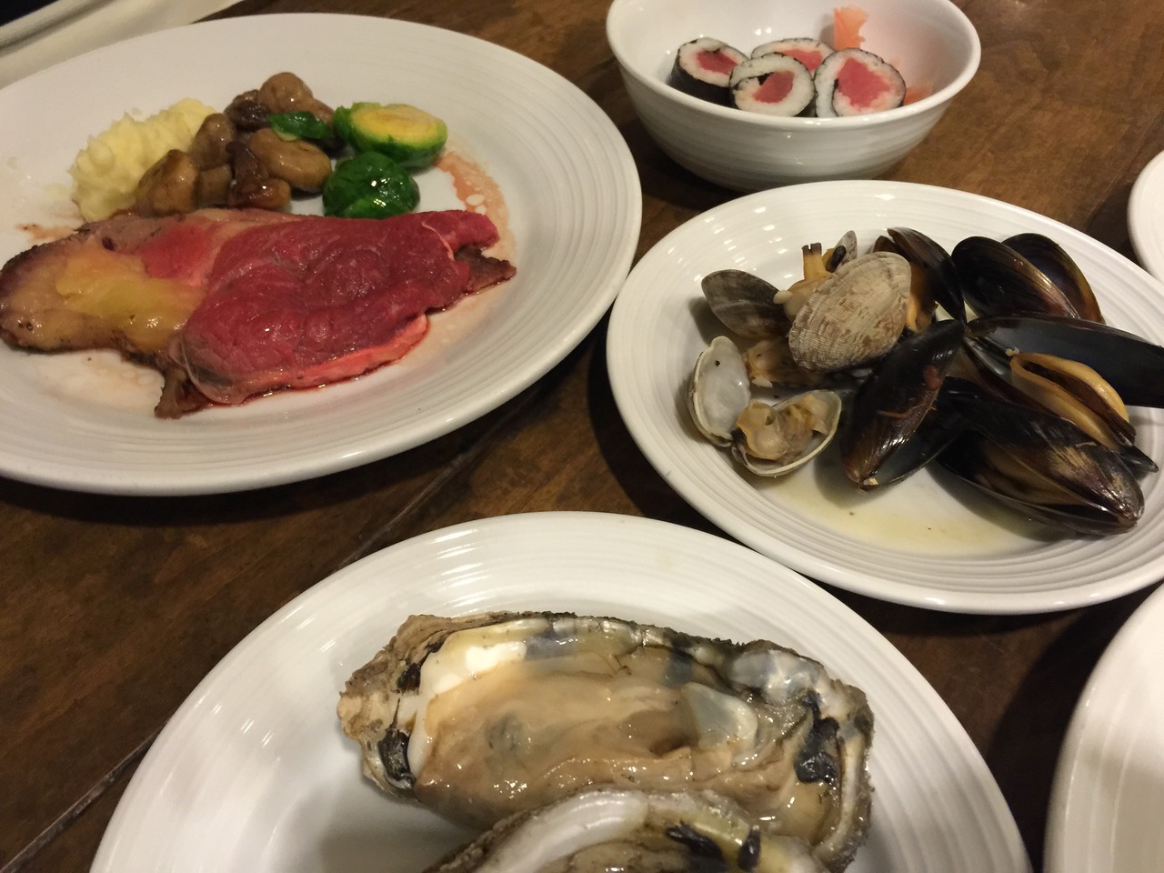 エッフェル塔の地下にあるこのバフェは、土日に行くと、かなりの行列ができます。行列は店のかなり先の方まで伸びていて、3時間待ちました。料理としてはいろいろな種類があります。残念なのは生牡蠣が生ぐさかったこと、そしてクレープを焼く人によっておいしさにばらつきがあるという点です。