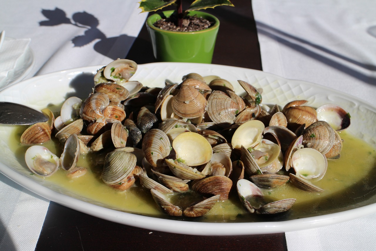 この日は「塩とガーリックで味付けしたアサリ」を前菜にして、その日のお勧めの魚を二人でシェア。この他、”お通し”で海鮮サラダが付いてきた。いずれも見た目、味ともに楽しませてもらった。
