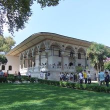 第3の庭園のハレムを出てすぐの所にあるのが謁見の間です。ここでスルタンと将軍が集まり様々な儀式が行われたそうです。現在、謁見の間はじゅうたんの展示室となっておりガラスケースに入ったじゅーたんが数枚展示されていました。時間があったら見学するぐらいで良いと思いました。