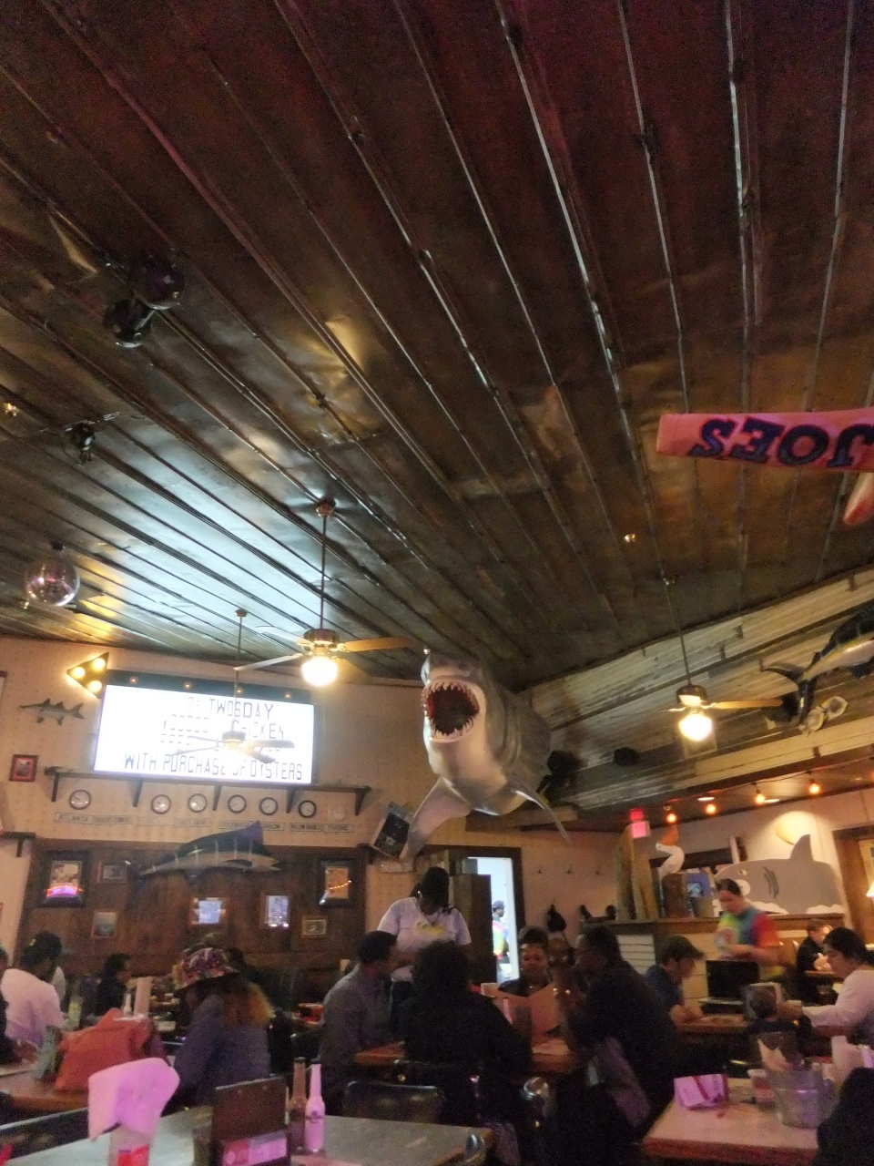 会社の同僚と夕飯に行って来ました。お店の中には、名前の通りジョーズがつるしてあります。お料理は、JUMBO BAIRDI CRAB BOILを注文。ちょっと塩辛かったですが、おいしいカニを頂きました。チェーン店ですが、紙エプロンをかけてくれたりサービスがよかったです。