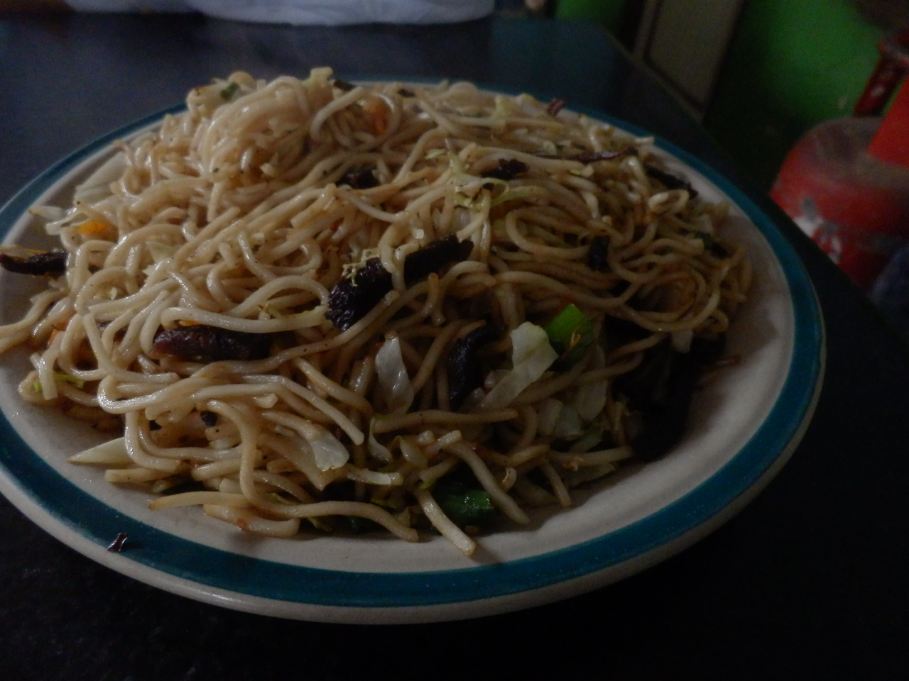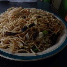 パタンのダルバール広場から南西方面に歩いた場所にあるバスターミナルの周りにはレストランが数軒並んでいて、こちらはその中の1軒です。ごく普通の食堂で、ネパール料理、インド料理のメニューがありました。注文したチョウメンは油っぽくて、味が濃かったです。