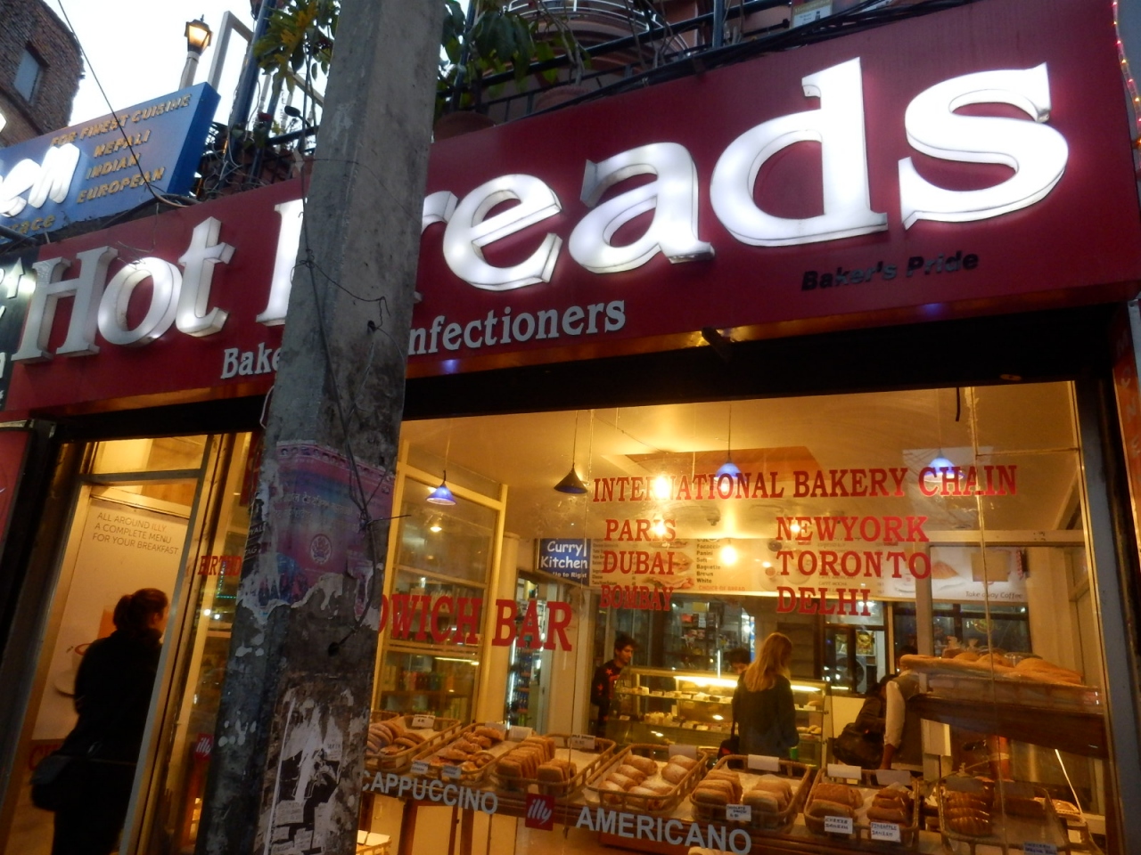 カトマンズゲストハウスのすぐ近くにあるパン屋さんです。欧米系の外国人観光客で賑わっているお店でした。こちらのお店では夜9時半から50%オフになります。(店先に看板が出ているので要チェック)その時間に訪れたら、購入するのも大変なほど大混雑していて驚きました。
