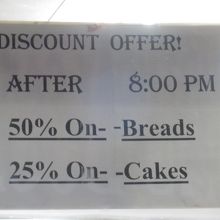 夜8時半からパンは半額、ケーキは25%オフ