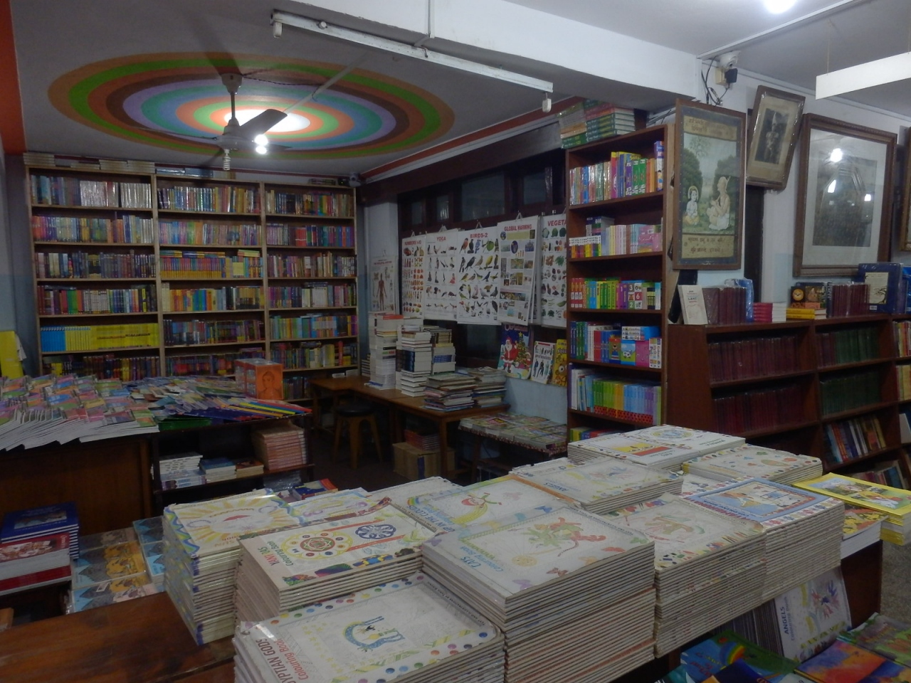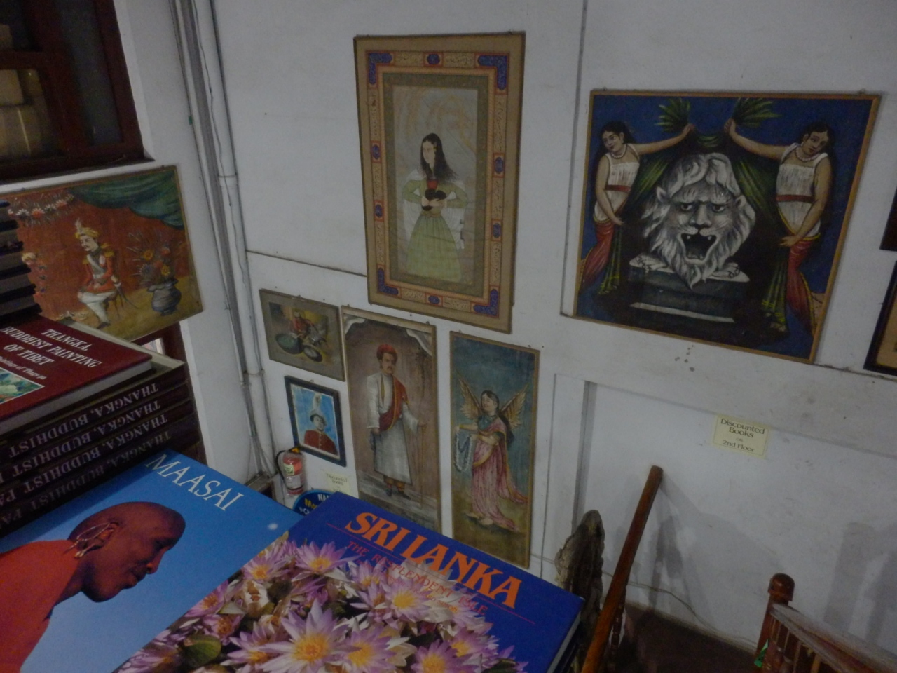 タメル地区にある有名な大型書店ですが、火事でお店が焼けてしまったようで、最近別の場所に移転して、営業が再開されました。新しいお店はゲストハウスだった建物を改装しているようで、まだいくつかのお部屋は改装途中でした。
