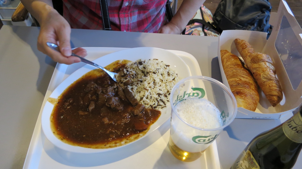 SASから、遅延のために一人約900円の買い物券をもらいましたので、待っている間にビールを飲んで食事をしました。
