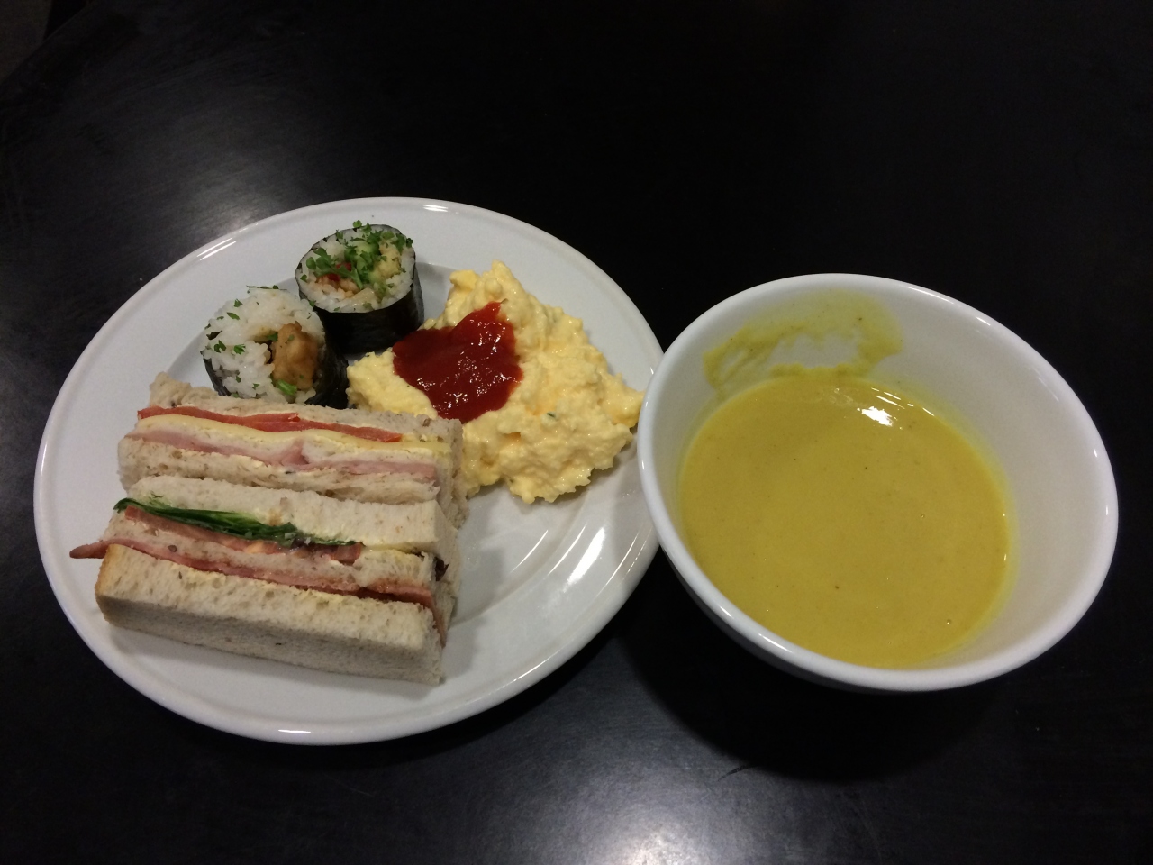 食事内容も朝はライトミールでしたが、11時ごろからしっかりとした内容の食事が提供されていました。
