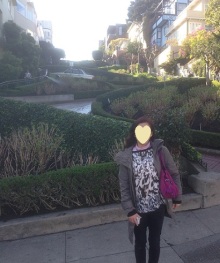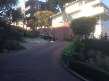 カミサンのたっての希望で行ってきました。普通に車がおりてくるので私道ではなく一般道だと思いますが、急坂のクネクネ道をあえて運転する気にはなりません。歩いて見物するだけですね。ケーブルカーで来るなら、ハイド線に乗ってください。坂の上に止まってくれるはず。フィッシャーマンズワーフから歩いてくるなら、急坂を覚悟してください。