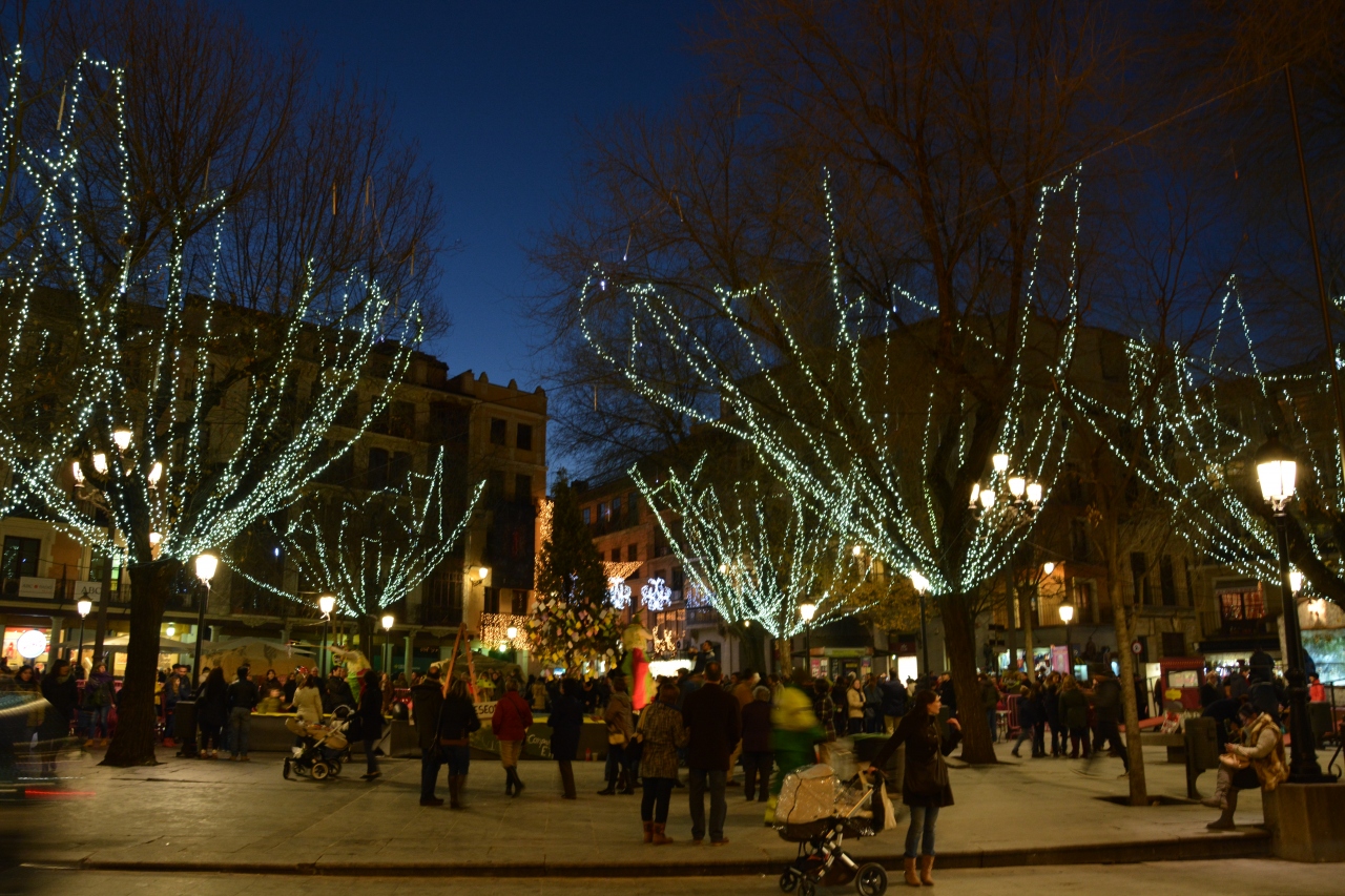 ソコドベール広場はアルカサルを下っていったところにある広場だ。イルミネーションがきれいで、週末だからか人が多くすごくにぎわっていた。この周辺はバルやレストランがあり、この先に商店街的な通りもあって食うのに困らない場所でもある。