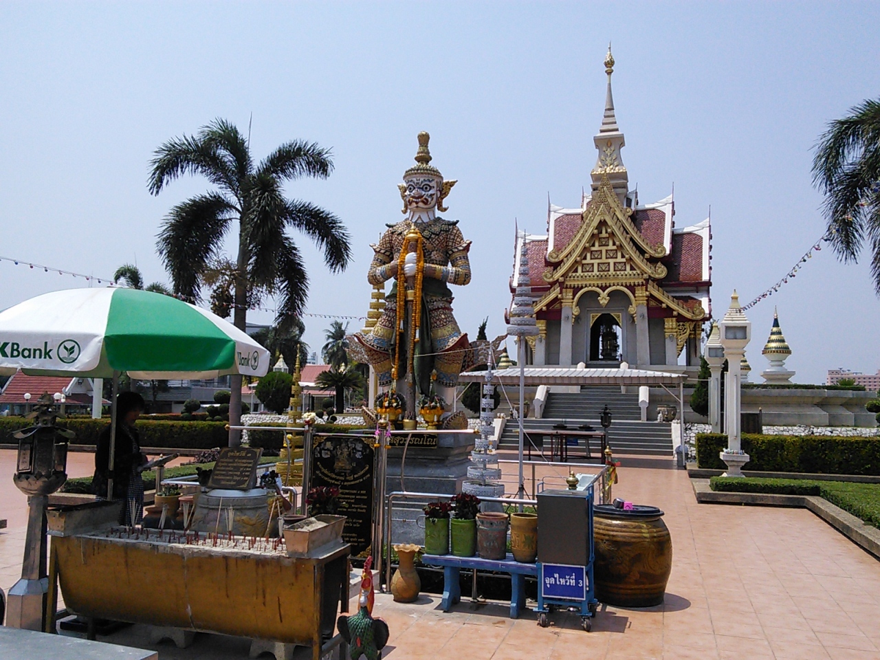トゥン・シー・ムアン公園北側の一画にあります。ラク・ムアン(市の柱)と聞いても我々日本人には馴染みがなくピンときませんが、これは市の守護神を祭るためのものでタイの各都市にあります。信仰の対象になっているためみんな参拝に来ています。また健康祈願や宝くじに当たりますようになどのお願い事もできるようで建物の周りにはそのためのゾウやウマの置物が置かれています。