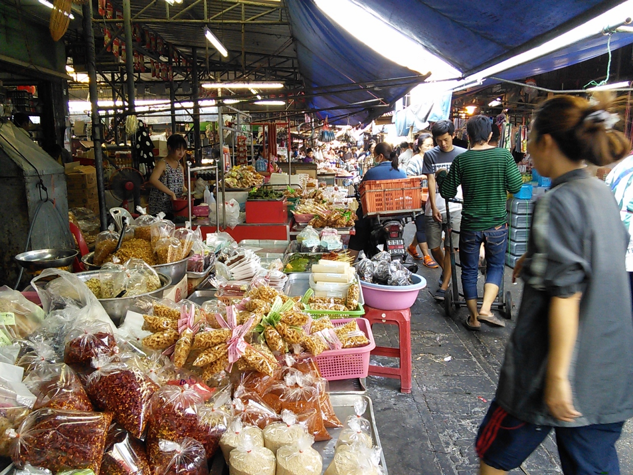 周囲の大通りからは少し奥まったところにあるため四方にある小さな路地を入っていきます。なんもローカルで活気のある市場です。すぐそばにはウドン一を誇る大型ショッピングモール「セントラルプラザ」がありその対比が東南アジアらしいというかタイらしいところでもあります。