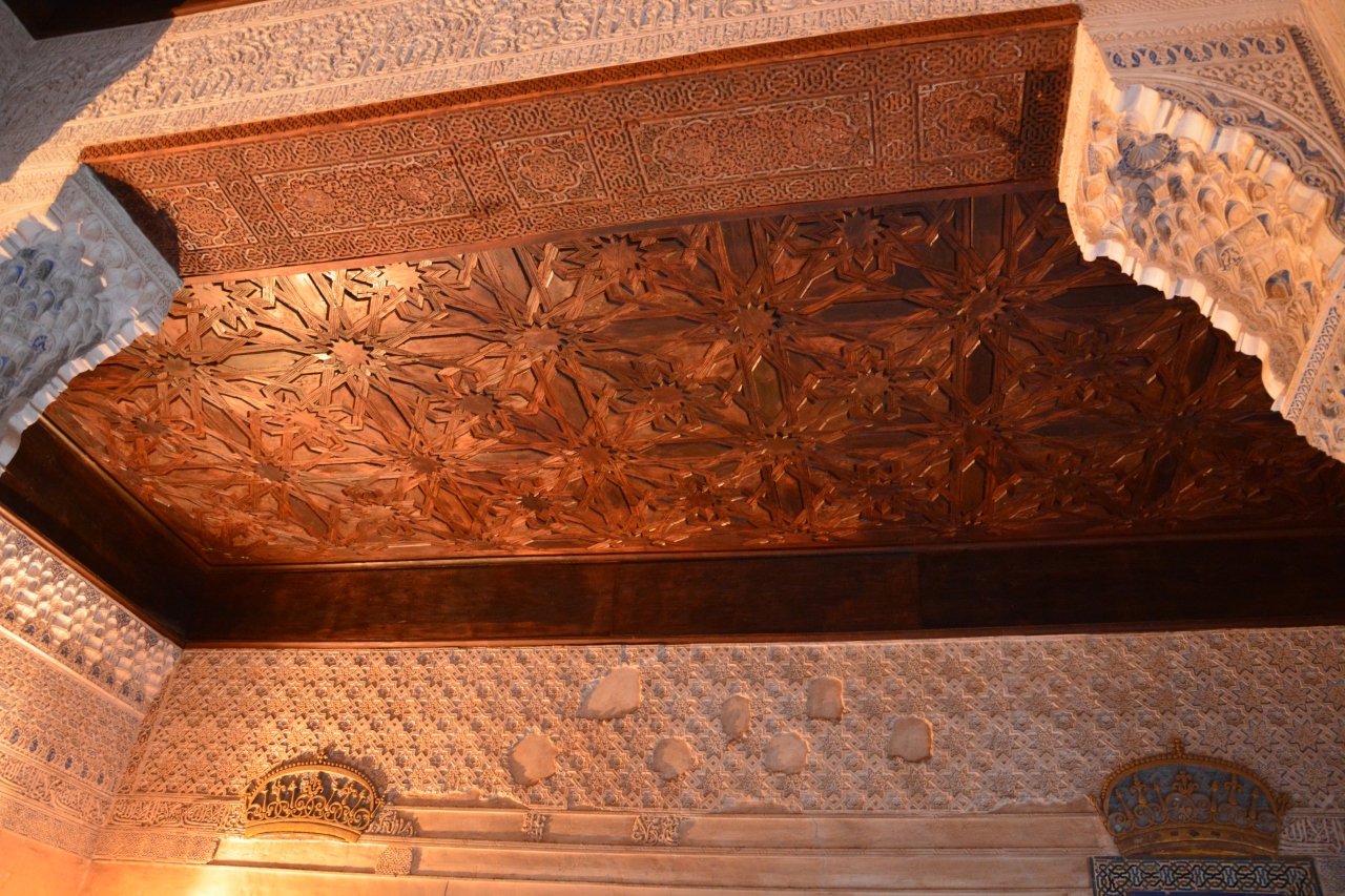 メスアール宮は現存するアルハンブラ宮殿の中でもっとも古い部分で、かつては会議や裁判に利用されたところ。装飾はレコンキスタ後に改修され、現在は木の天井になってるところはナスル王朝時代にはステンドグラスだった。緻密な装飾が施された祈祷室の先に中庭がある。