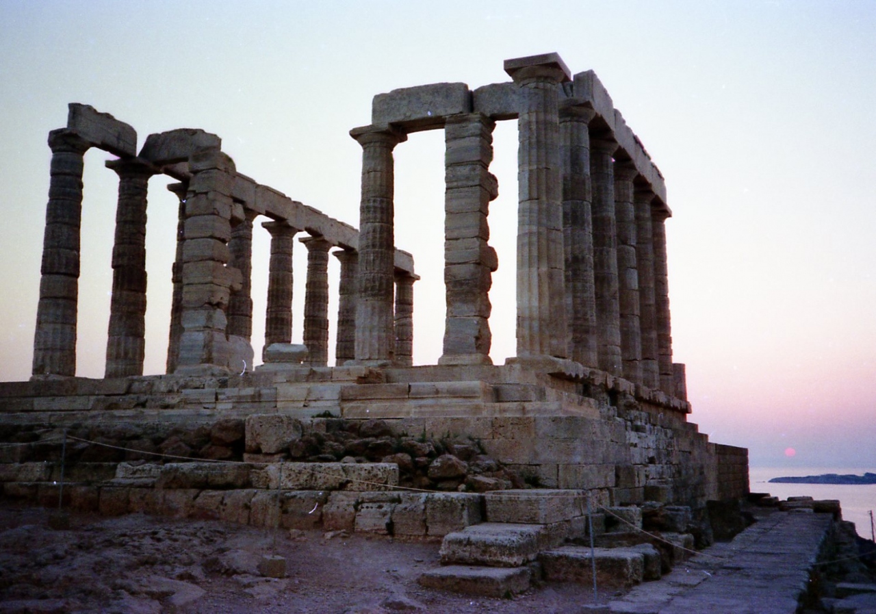 アテネの南東に延びるアポロコースト、その先端にポセイドン神殿がある。ポセイドン神殿は、紀元前5世紀頃に航海の無事を祈って 海の守護神ポセイドンに捧げられた神殿でドーリア式の大理石柱廊16本が残っている。