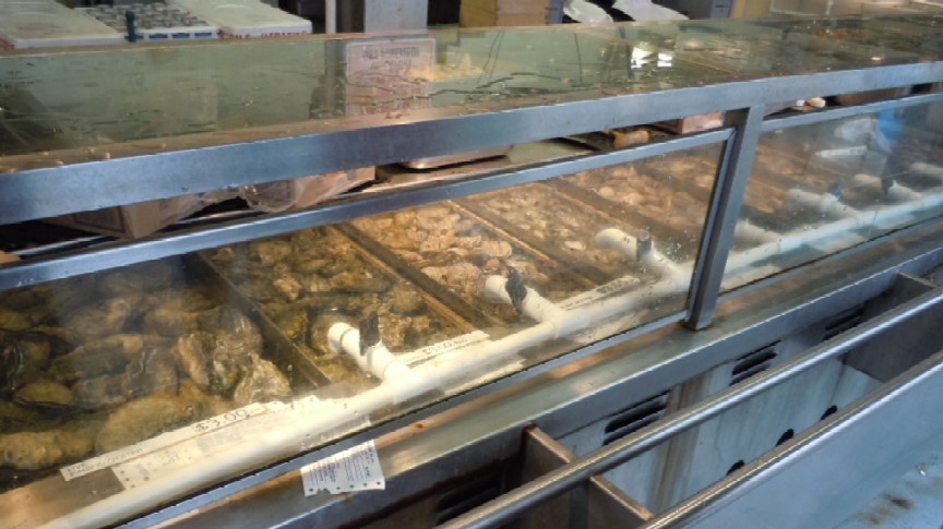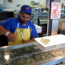 オイスターバーでは種類豊富な牡蠣とクラムが購入出来てその場で味わえる!